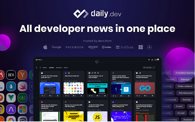 - With daily.dev extension all kinds of developer news can be found in one place. This extension will provide you with news from more than 400 sources.