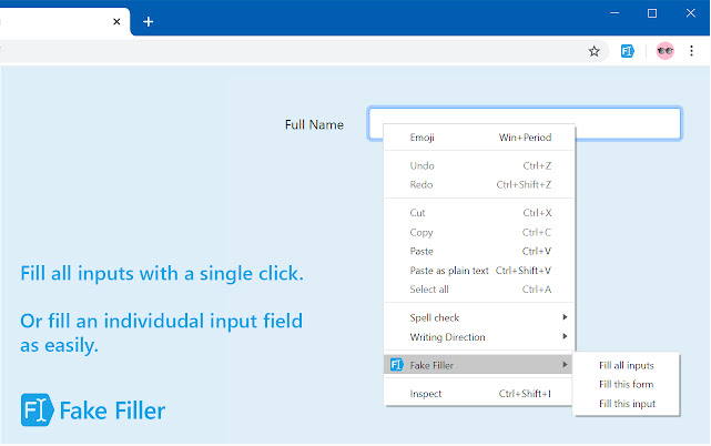 - What a productivity booster this Chrome extension is! With Fake Filler which has 100k users, you can fill out forms on your website.