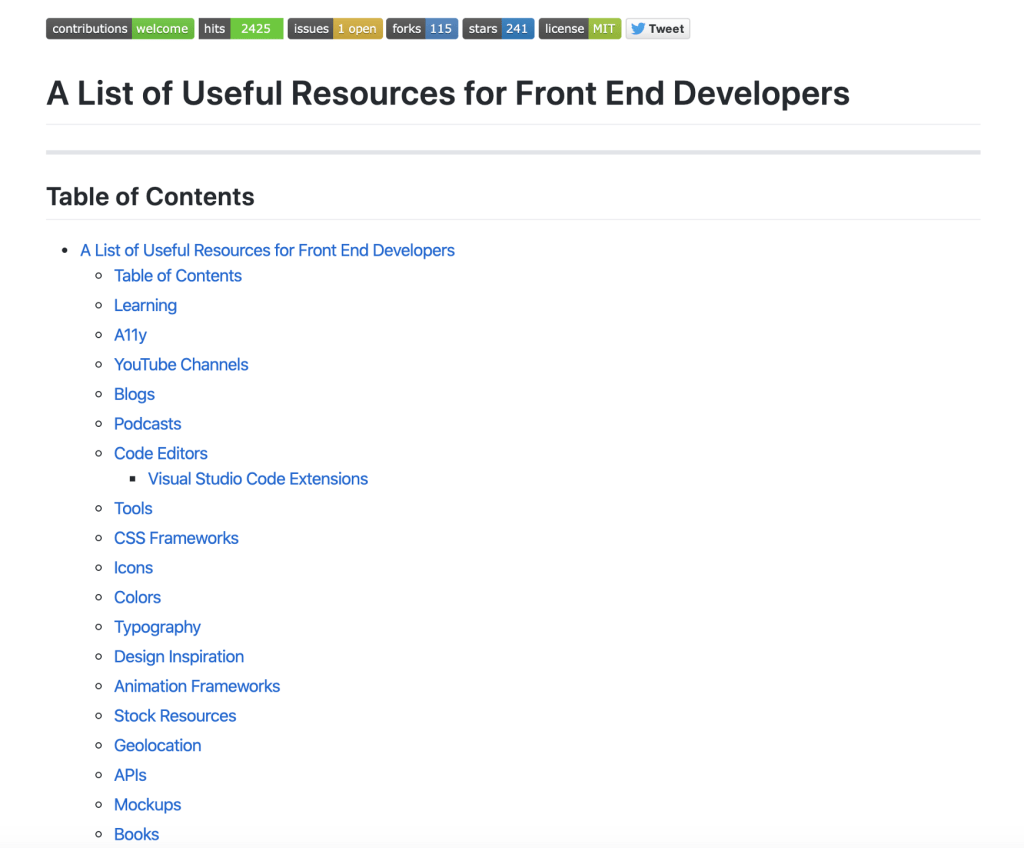 1. A List of Useful Resources for Front-End Developers