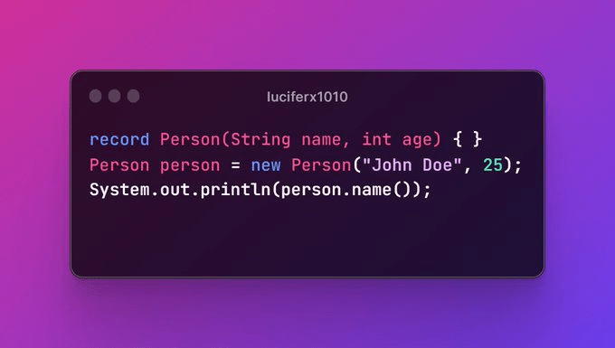 equals(),hashCode(), andtoString()methods. For instance, you can define aPersonrecord: